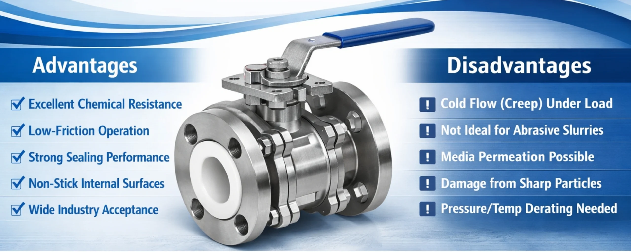 | Corrosion protection (in lined valves) | PTFE lining shields the metal body | Longer valve life in corrosive services |